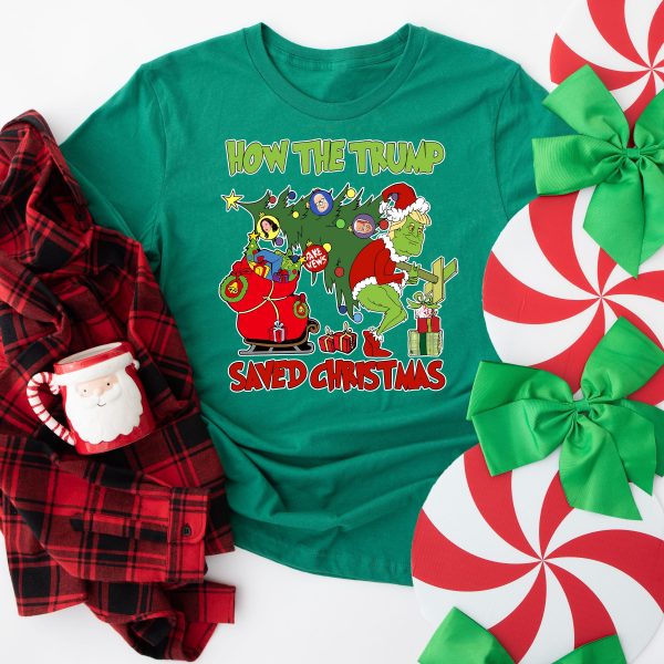 How The Trump Saved Christmas TShirt,Trump Make Xmas Great Again Shirt,Humorous Trump Xmas Shirt,Santa Trump Shirt,Green Trump Shirt